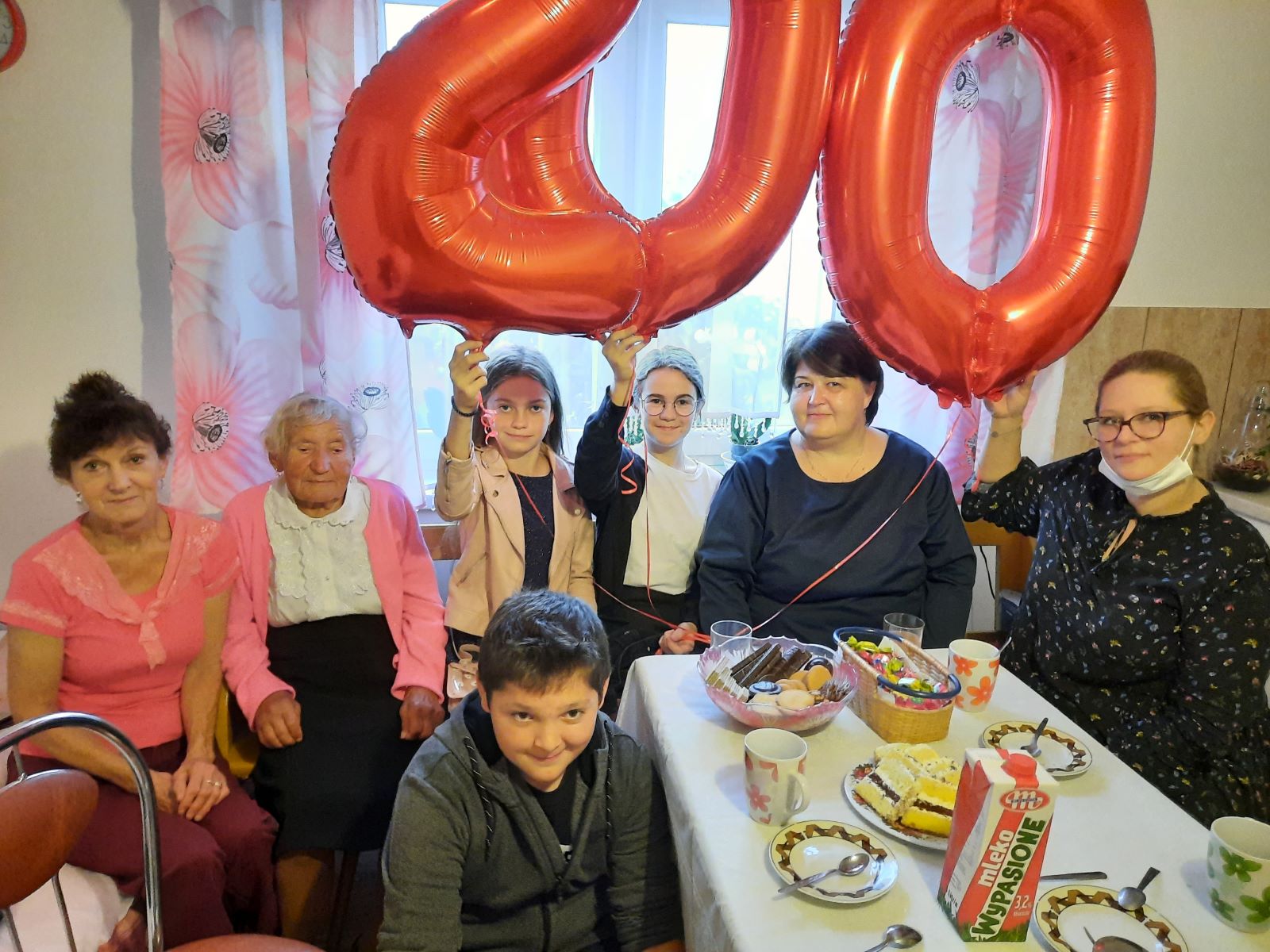 Dnia 17 września 2021 uczniowie wraz z nauczycielami odwiedzili Panią Marię Myszka, która obchodziła niedawno setne urodziny. Jest to najstarsza mieszkanka naszej wsi.