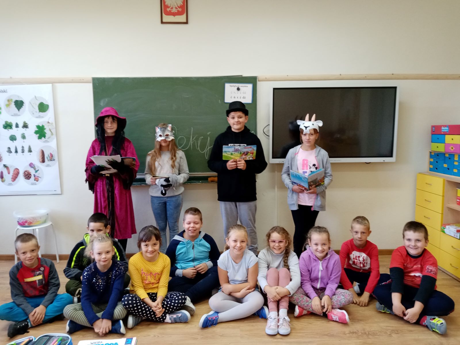 Z tej okazji uczniowie klasy VII uczęszczający na koło teatralne wcielili się w rolę czytających. Odwiedzili nie tylko przedszkolaków, ale także uczniów klas I – III. Umilili maluszkom czas spędzony w przedszkolu/szkole, czytając różne bajki i baśnie. Dzieci były zachwycone inicjatywą siódmoklasistów. Uważnie słuchały swoich starszych kolegów i koleżanek, za co w nagrodę otrzymały kolorowanki. Można było zobaczyć na ich twarzach uśmiech.