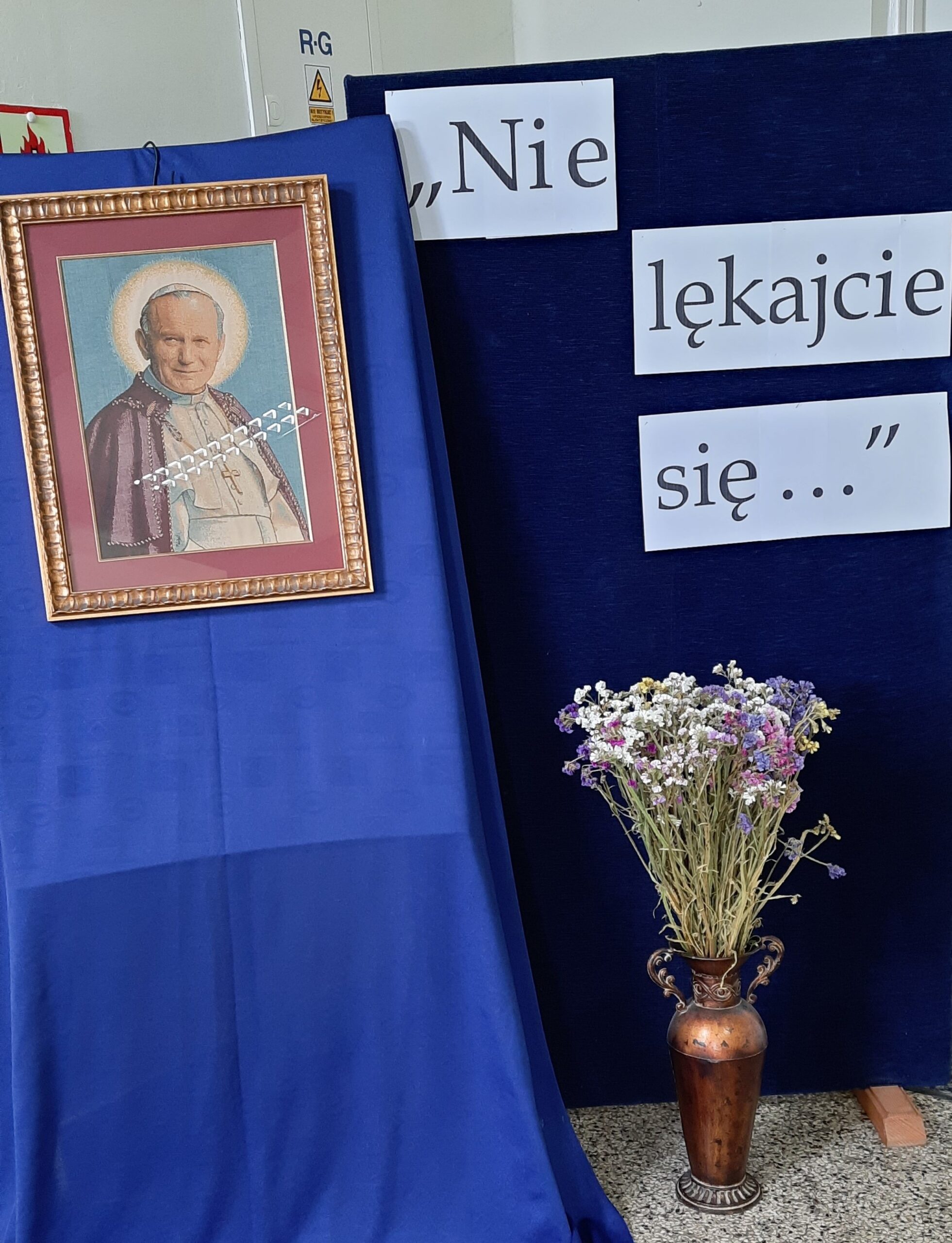 20 X 2021r w naszej Szkole przeżywaliśmy Dzień Papieski, upamiętniający 43 rocznice wyboru Karola Wojtyły na Papieża Jana Pawła II. Hasłem tego dnia były słowa inaugurujące pontyfikat „Nie lękajcie się…”. Uczniowie uczestniczyli w krótkim apelu przypominającym to wydarzenie i orędzie Jana Pawła II.