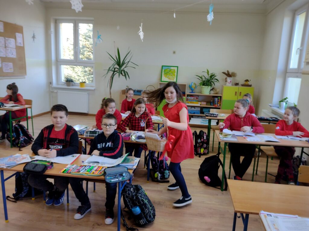 14 lutego to dzień miłości i przyjaźni! W tym dniu w naszej szkole królował kolor czerwony. Już od samego rana po szkole kursowała poczta walentynkowa. Roznoszone były wcześniej przygotowane przez uczniów karteczki, laurki, liściki oraz lizaki oczywiście wszystko w serduszka. Poczta walentynkowa przyniosła uczniom wiele radości i zabawy. Celem walentynek w szkole było zachęcenie uczniów do okazywania uczuć innym osobom, jak i budowanie solidarności w grupie, przyjaźni, życzliwości i szacunku do drugiego człowieka.