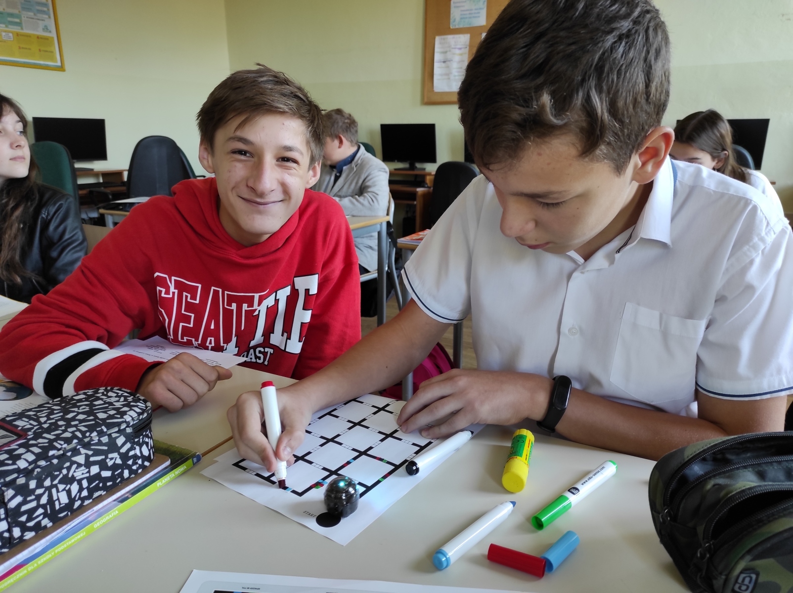 Uczniowie naszej szkoły wzięli aktywny udział w Europejskim Tygodniu Kodowania. Przeprowadzone aktywności dały dużo radości uczestnikom, przyczyniły się również do rozwoju umiejętności analitycznego i logicznego myślenia. W czasie zajęć pracowaliśmy z ozobotami, graliśmy w gry operacyjne na macie, ćwiczyliśmy kodowanie tras za pomocą strzałek, programowaliśmy wizualne sekwencje poleceń.