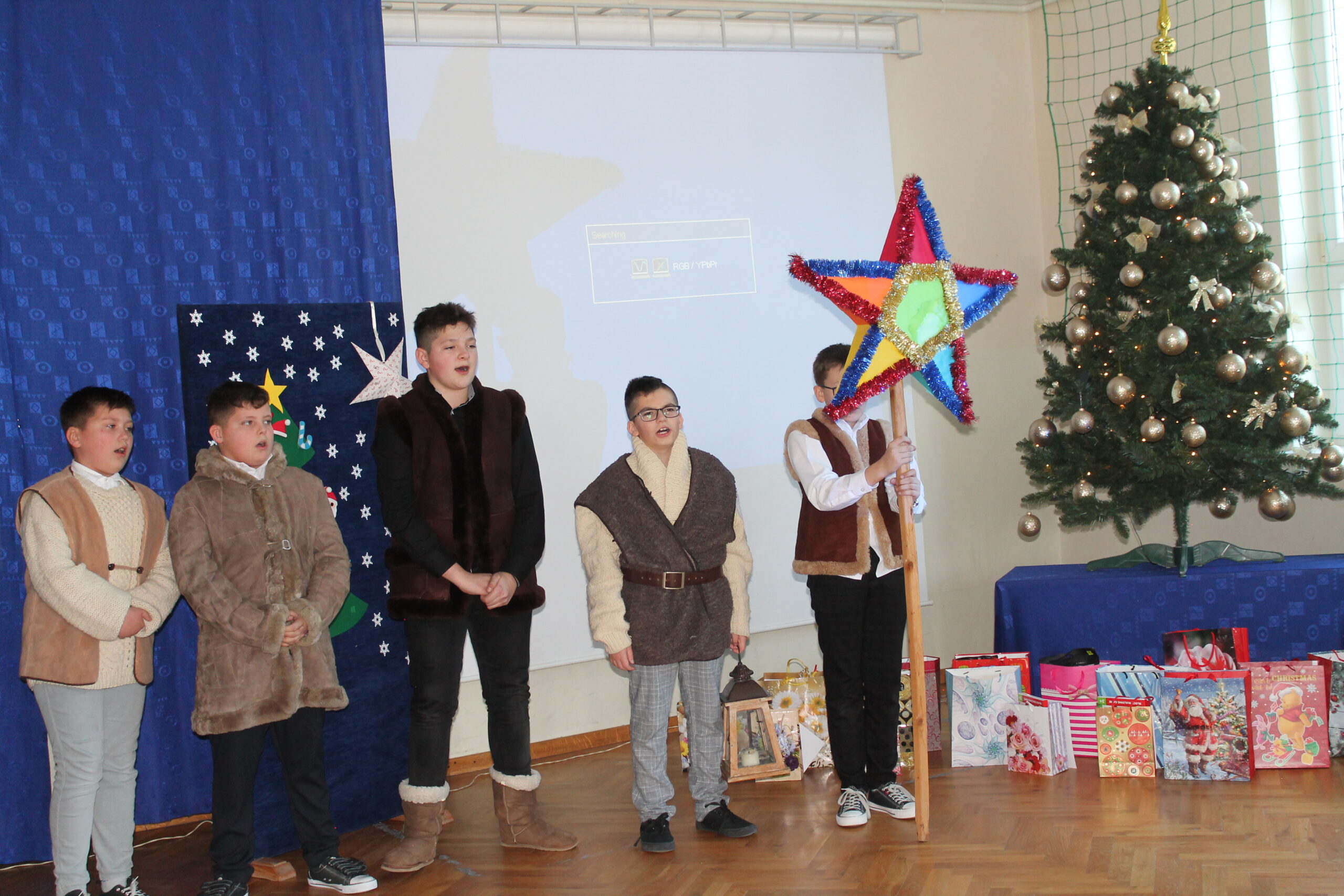 22 grudnia 2022r. cała społeczność szkolna spotkała się w pięknie przystrojonej sali gimnastycznej na uroczystości poświęconej Świętom Bożego Narodzenia. Po złożeniu życzeń przez przewodniczącą Samorządu Szkolnego wysłuchaliśmy koncertu kolęd i piosenek świątecznych, wykonanych przez wszystkie klasy oraz oddział przedszkolny. Szczególne uznanie zdobyła najmłodsza flecistka – Zosia Myszka z oddziału przedszkolnego. W koncercie zaprezentowały się też dziewczęta z klasy VI i V oraz grupa kolędnicza „Z gwiazdą” .