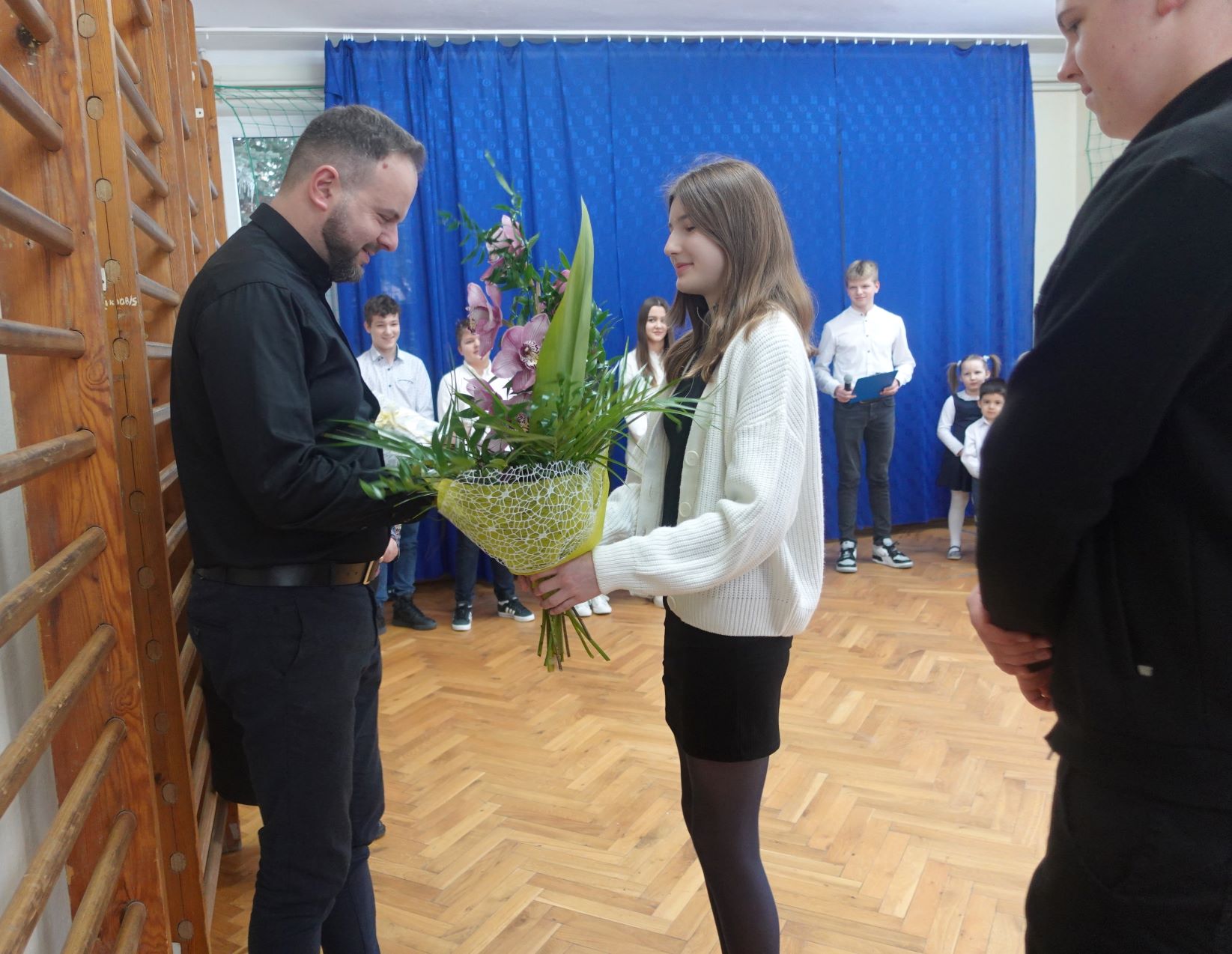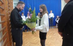 Pani Dyrektor podziękowała Księdzu za bardzo dobrą współpracę i życzyła wszelkich sukcesów w dalszej pracy duszpasterskiej. Podziękowania w imieniu całej społeczności szkolnej przekazali uczniowie klasy VII. Rada Rodziców również podziękowała za naukę religii, wręczając kwiaty oraz prezent. Szczególne podziękowanie skierowali uczniowie i Rodzice uczniów klasy III których ks. Paweł przygotowywał do I Komunii Świętej.