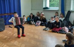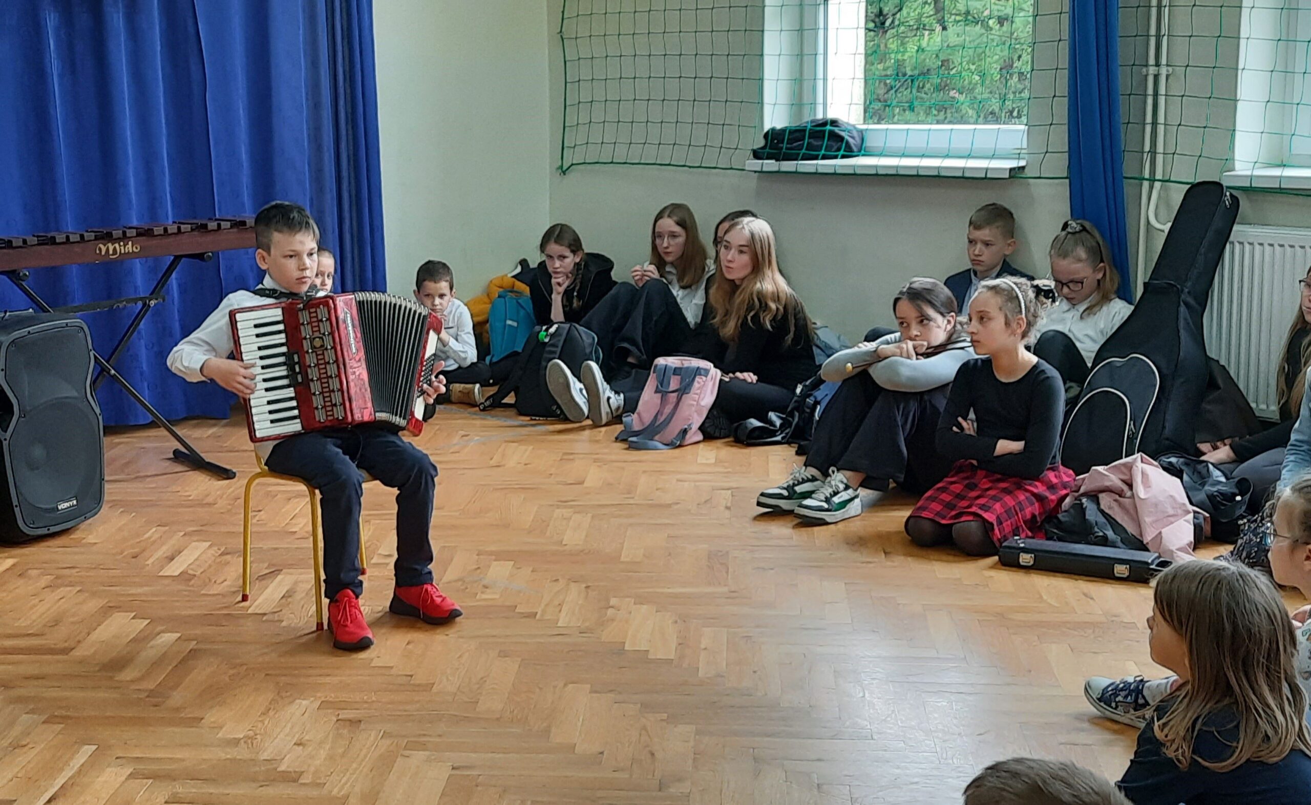 Wysłuchaliśmy koncertu w wykonaniu małych trębaczy, akordeonistów, wiolonczelistów, flecistów, śpiewaków. Dzięki ciekawemu wprowadzeniu poznaliśmy różnicę między instrumentami dętymi drewnianymi a blaszanymi, instrumentami strunowymi smyczkowymi a szarpanymi. Koncert dostarczył wszystkim wielu wrażeń muzycznych.