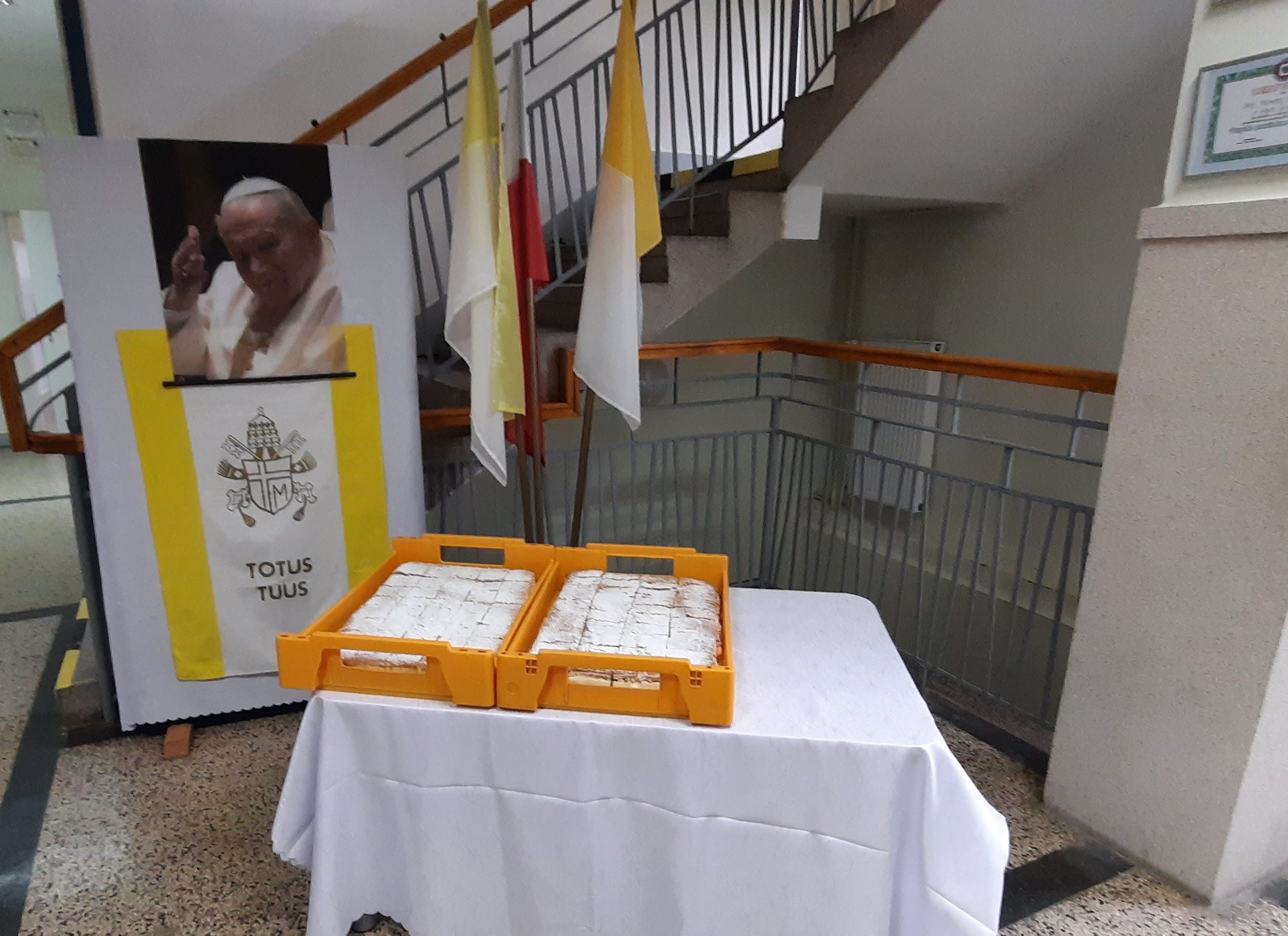Nasza społeczność szkolna, jak co roku również uczciła pamięć Papieża Jana Pawła II. W ramach szkolnych obchodów XXIII Dnia Papieskiego, klasa druga wraz z wychowawcą – panią Małgorzatą Dudek przygotowała uroczystą akademię. Na korytarzu szkolnym została także przygotowana okolicznościowa wystawa poświęcona świętemu Janowi Pawłowi II. Zaś podczas przerw uczniowie i pracownicy naszej szkoły mogli degustować słynne kremówki.