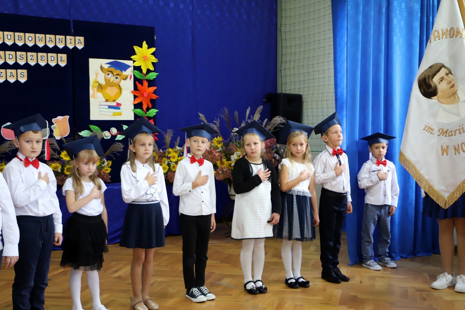 17 października 2023 nastąpił bardzo ważny moment w życiu każdego pierwszaka – ślubowanie. W tym uroczystym wydarzeniu udział wzięli: wójt gminy Pan Jan Skrzekut, dyrektor GZOS Pani Edyta Król, rodzice uczniów, nauczyciele i uczniowie. Pierwszoklasiści zaprezentowali zgromadzonym swoje umiejętności recytatorskie i wokalne. Pasowania na uczniów naszej szkoły dokonała Pani dyrektor Maria Sułkowska.