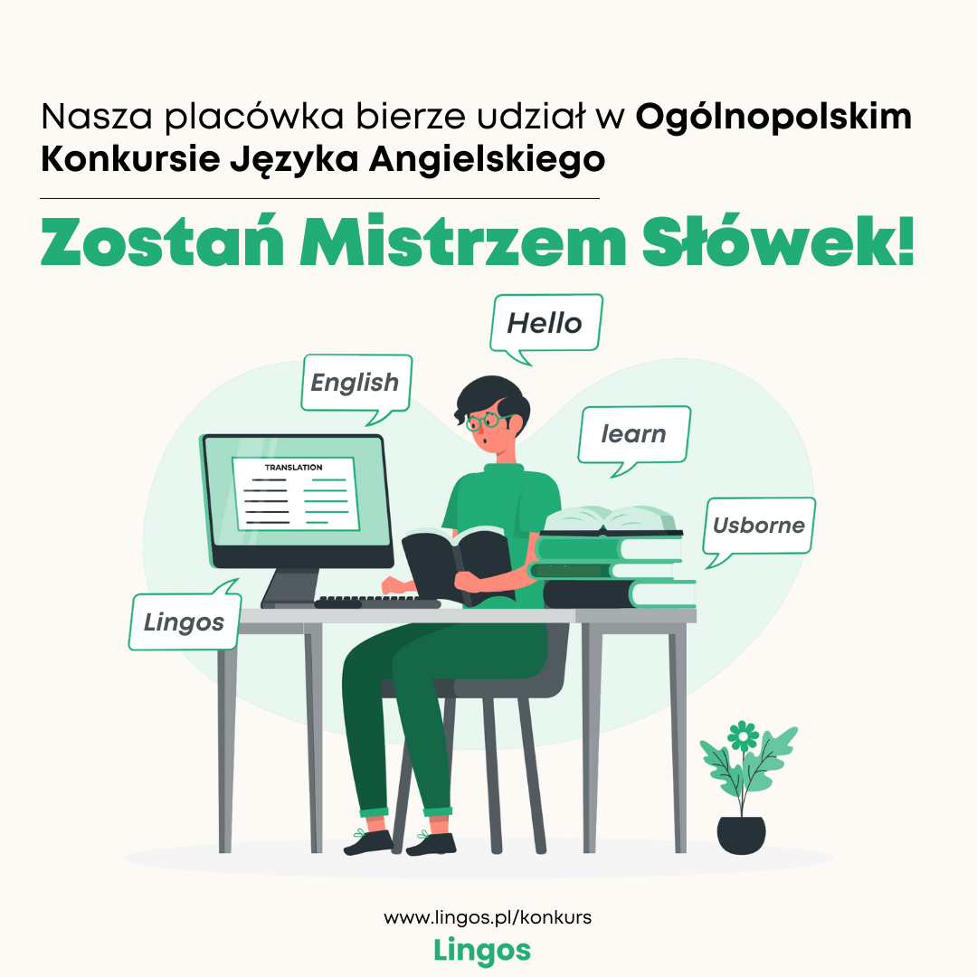 W dniu 23 listopada 2023r. uczniowie klas od IV – VIII wzięli udział w ogólnopolskim konkursie z języka angielskiego „Zostań mistrzem słówek” LINGOS.