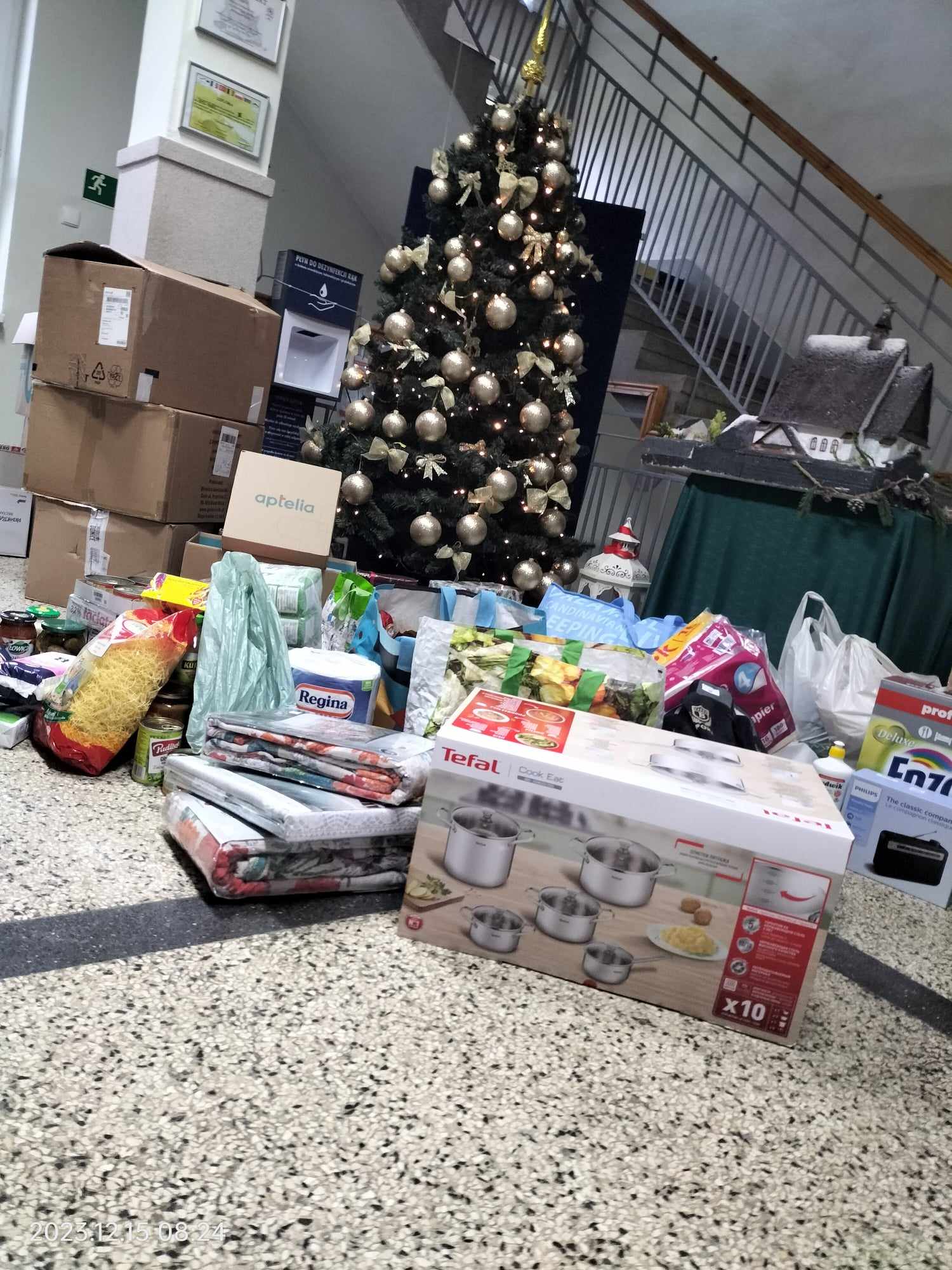 Do tworzenia Paczki dla wybranej przez nas rodziny zaprosiliśmy całą społeczność szkolną: uczniów, rodziców i nauczycieli. Dzięki zaangażowaniu wielu osób w organizację kiermaszu charytatywnego udało się zebrać środki finansowe i przygotować paczkę o wartości ok. 5200 złotych. Zakupiliśmy pralkę, stół, wykładzinę, komplet garnków, żywność, chemię gospodarczą, odzież i inne artykuły domowego użytku.