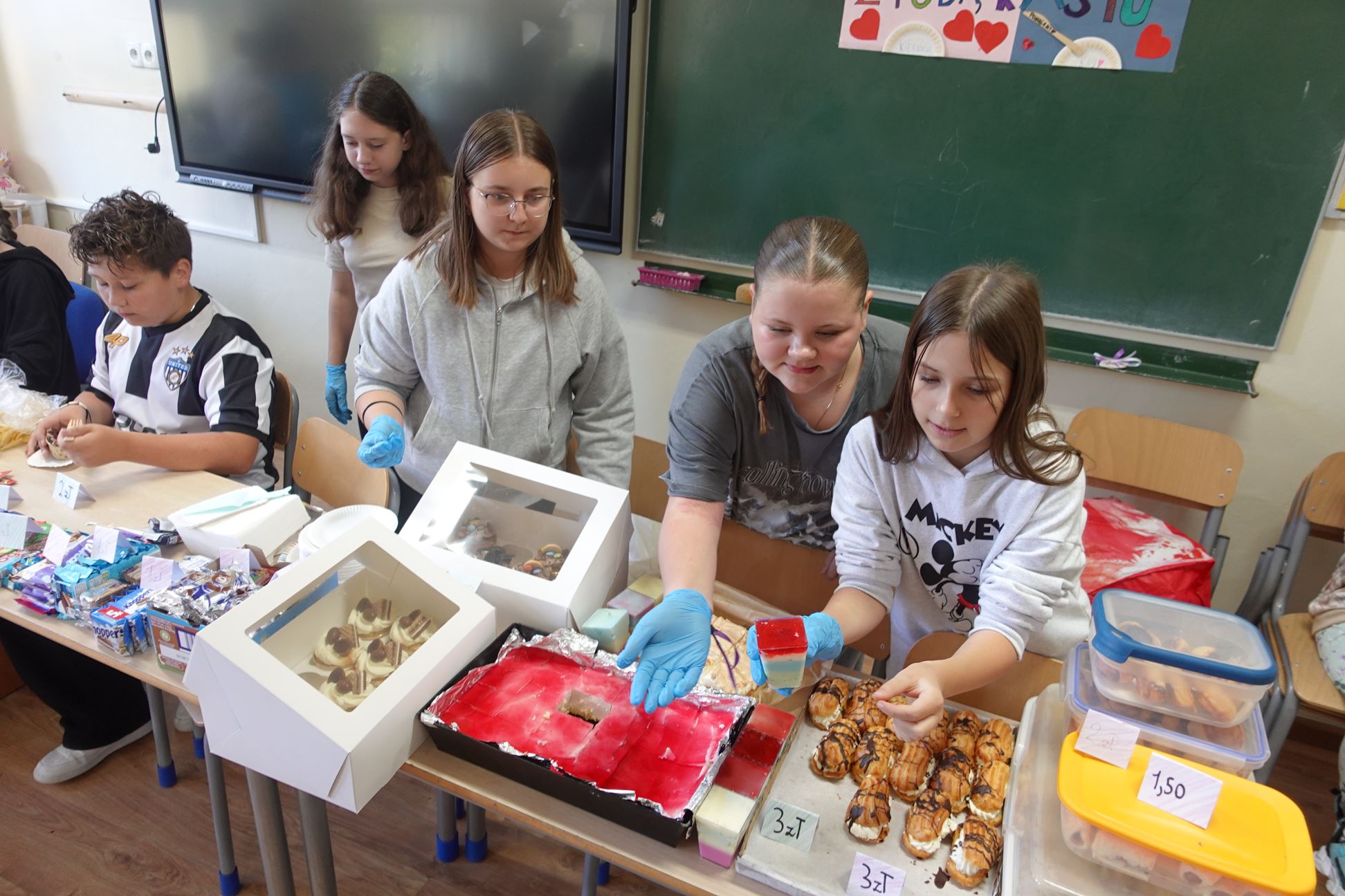 Dzięki zaangażowaniu uczniów, rodziców oraz nauczycieli udało się stworzyć prawdziwą ucztę! Przygotowano szeroki wybór słodkich i słonych przekąsek – od muffinek i ciasteczek, przez galaretki i babeczki, aż po domowe mini pizze i zapiekanki. Stoły uginały się od różnorodnych wypieków i przekąsek, a każdy, kto odwiedził kiermasz, mógł znaleźć coś dla siebie.