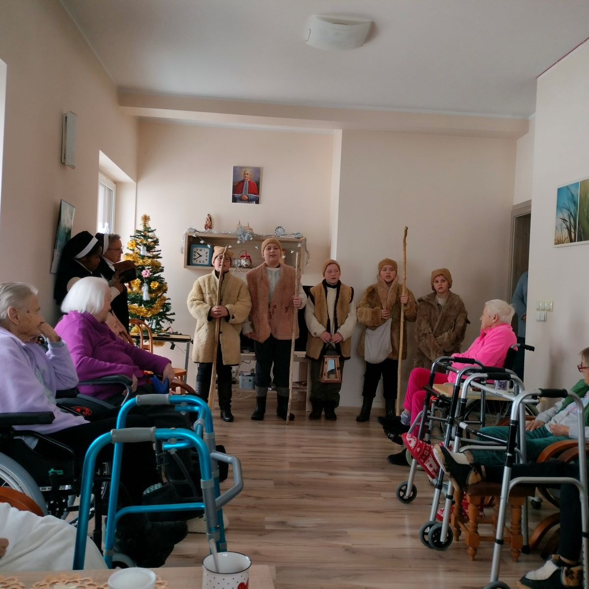 15 stycznia 2025r. Grupa Kolędnicza „Z Gwiazdą” kolędowała w Rodzinnym Domu Pomocy „Jezusa z Nazaretu ” w Limanowej. Podopieczne placówki jak co roku przywitały nas z radością, wspólnie z chłopcami śpiewały kolędy. Grupa oprócz życzeń noworocznych przyniosła również uśmiech na twarzach pacjentek.