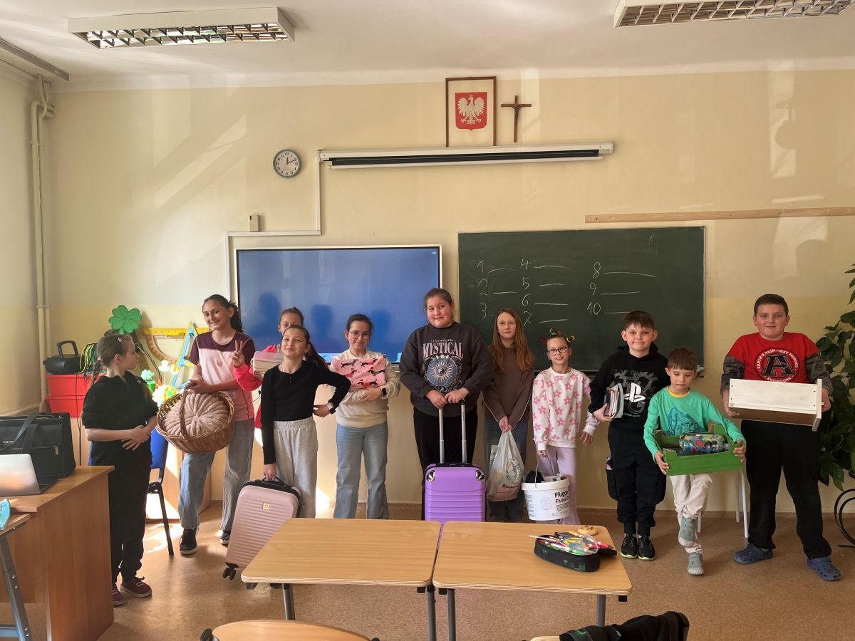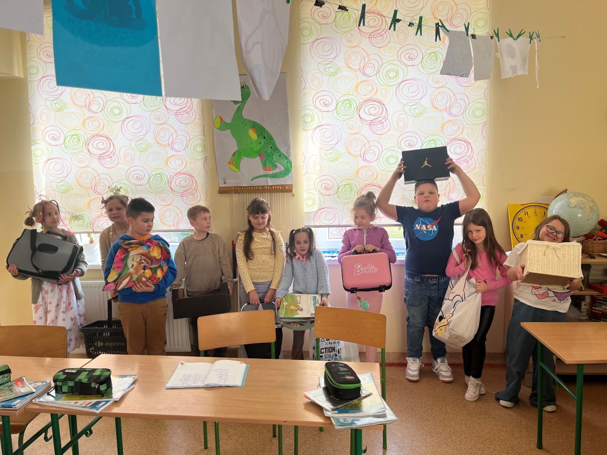 W piątek, 20 marca, w naszej szkole świętowaliśmy pierwszy dzień wiosny w wyjątkowo radosny i kreatywny sposób. Tego dnia uczniowie przyszli bez tradycyjnych plecaków, zastępując je niezwykłymi przedmiotami. Książki i przybory szkolne można było znaleźć m.in. w walizkach, koszach na pranie, suszarkach do ubrań, pufach, a także innych pomysłowych „zamiennikach”. Kreatywność uczniów była naprawdę imponująca!