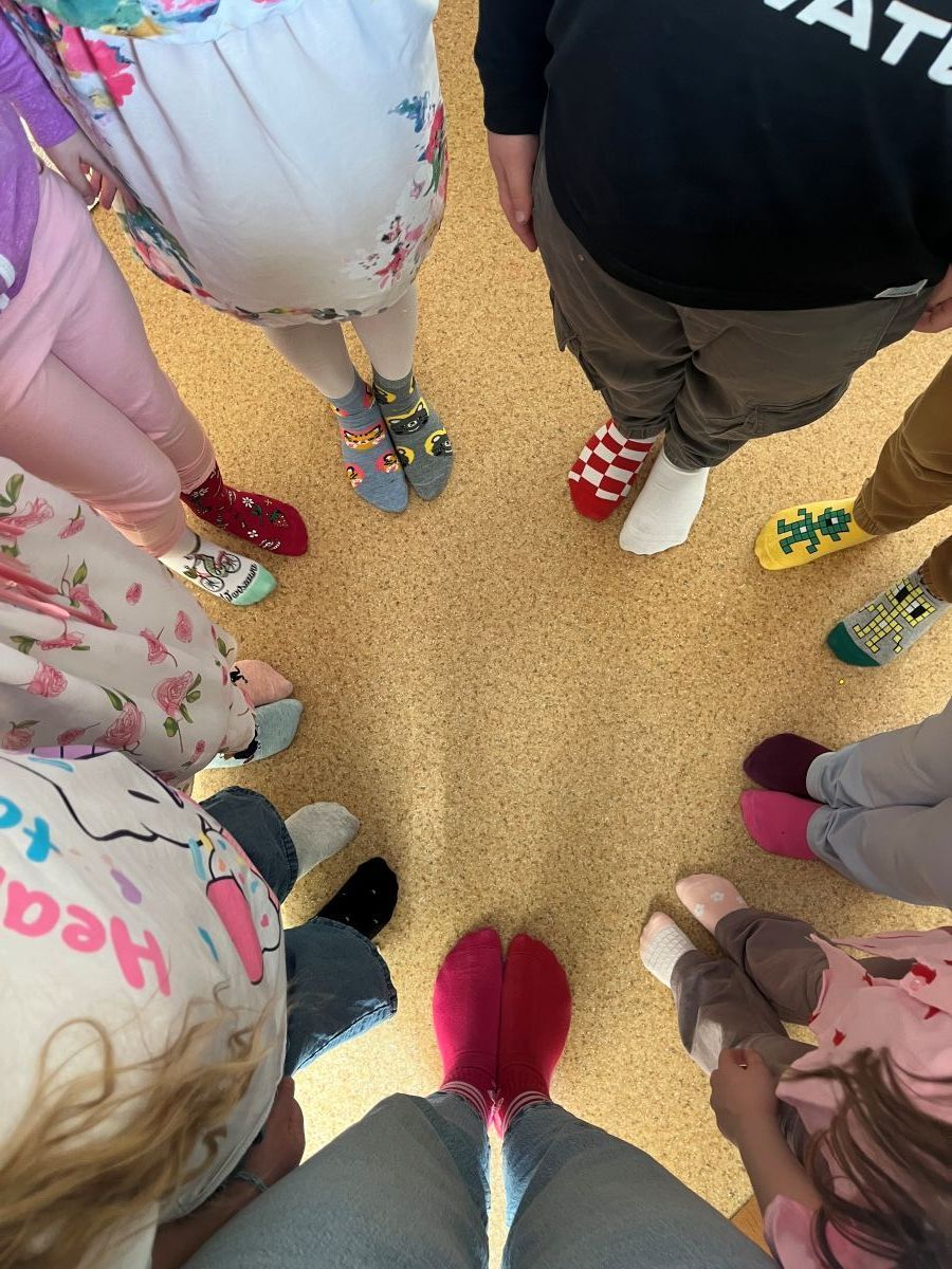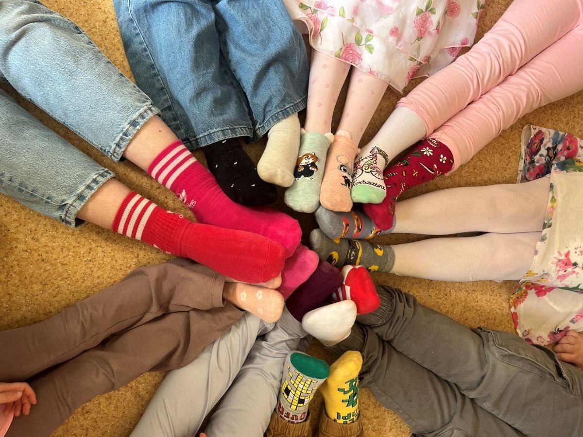 W tym dniu obchodziliśmy także Dzień Kolorowej Skarpetki, wyrażając solidarność z osobami z zespołem Downa. Uczniowie i nauczyciele założyli różnokolorowe, nie do pary skarpetki jako symbol akceptacji, szacunku i otwartości na różnorodność.