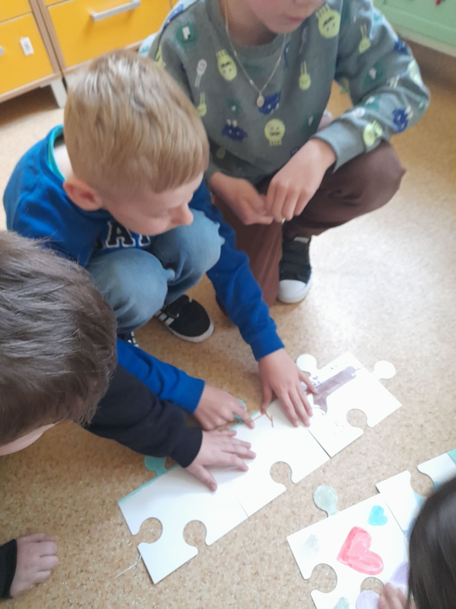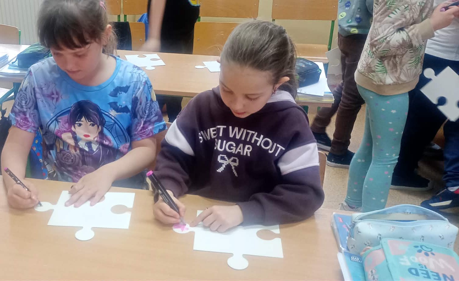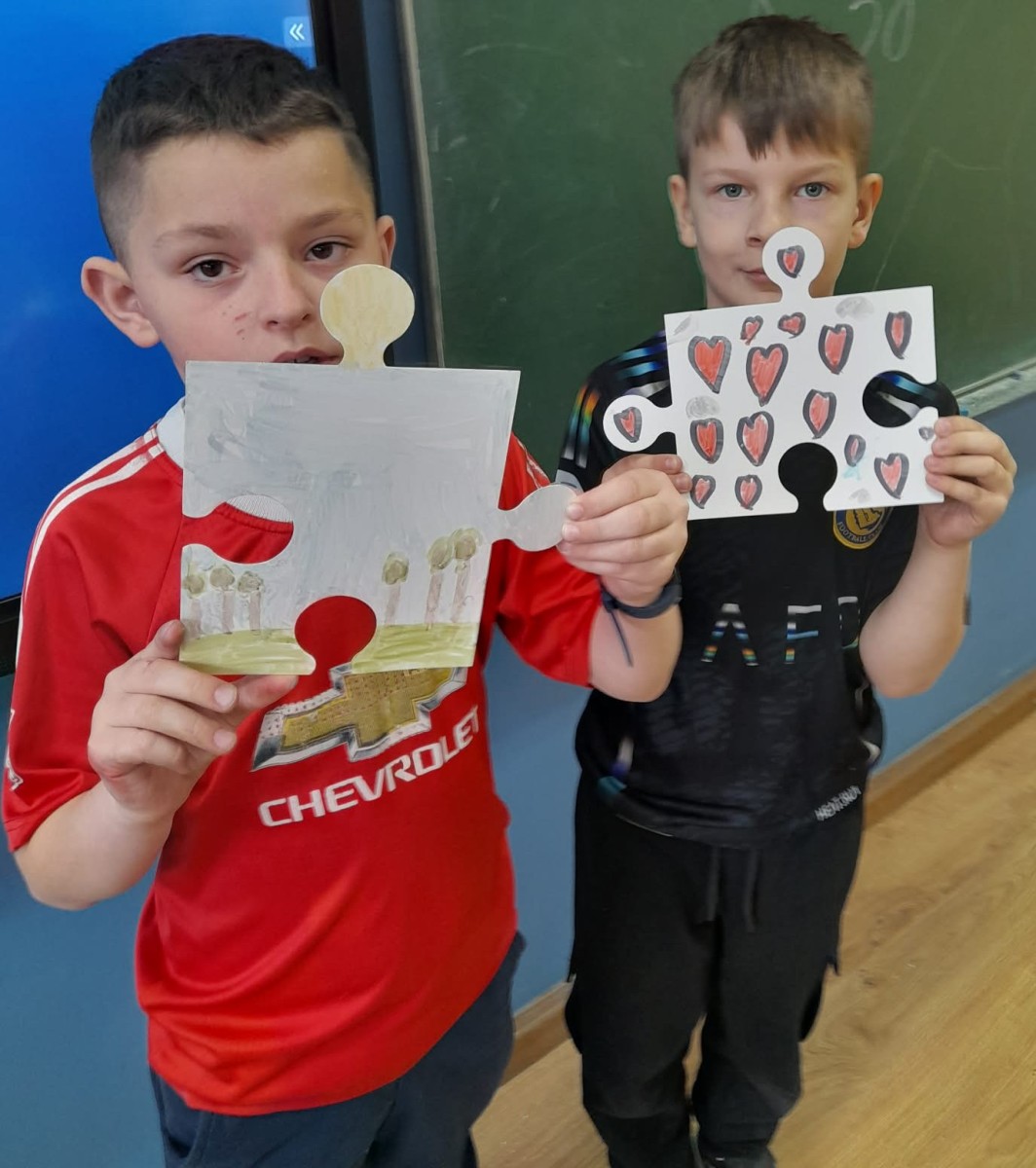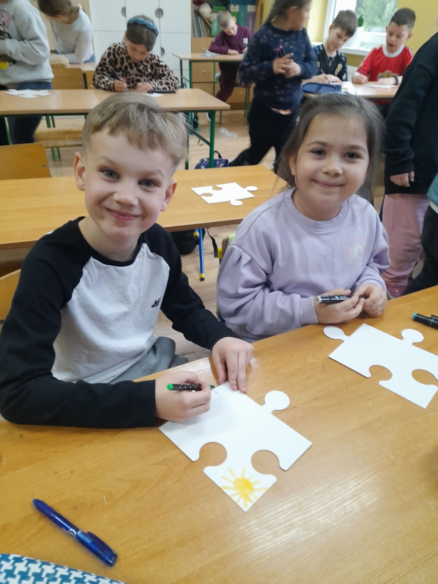 Podczas spotkań dzieci miały okazję dowiedzieć się, czym jest autyzm oraz jak wygląda codzienne funkcjonowanie osób w spektrum. Szczególną uwagę poświęcono różnym potrzebom, w tym nadwrażliwościom sensorycznym, z jakimi mogą mierzyć się niektóre osoby. Dzięki temu uczniowie lepiej zrozumieli, jak ważne są empatia, cierpliwość i wzajemny szacunek. W ramach działań integracyjnych dzieci wspólnie dekorowały puzzle, które następnie zostały połączone w jedną całość. Symbolizowały one równość i jedność – pokazując, że mimo różnic każdy z nas jest ważną częścią społeczeństwa.